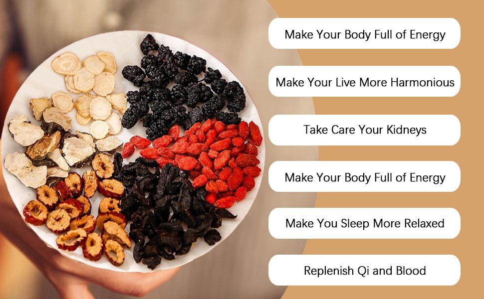 🌱 Supports Kidney Health & Boosts Energy Packed with ginseng and mulberry, this herbal tea helps to detoxify and support your kidneys while increasing energy levels. Say goodbye to fatigue and hello to lasting vitality!