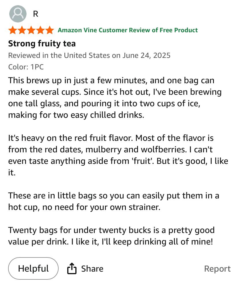 We recommend 1 tea bag per day. For best results, enjoy it consistently as part of your daily routine.