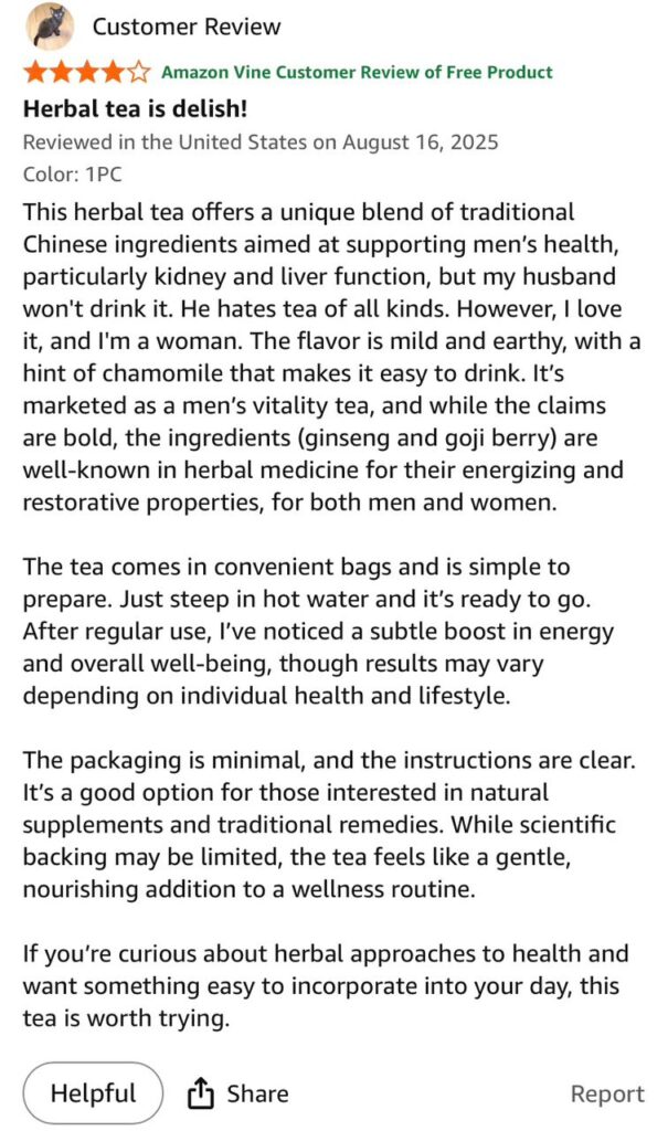 No. This tea is a natural wellness drink designed to support vitality for both men and women.